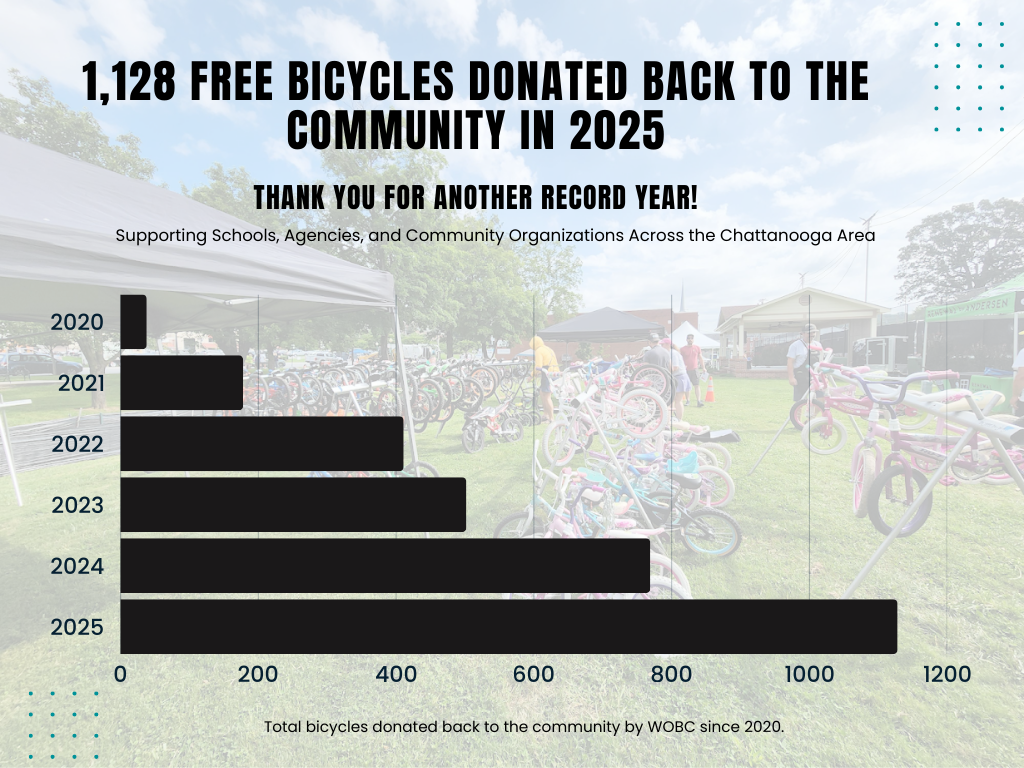 Supporting the missions of Chattanooga area nonprofits and government agencies by providing free access to bicycles and repair services for the individuals they serve.