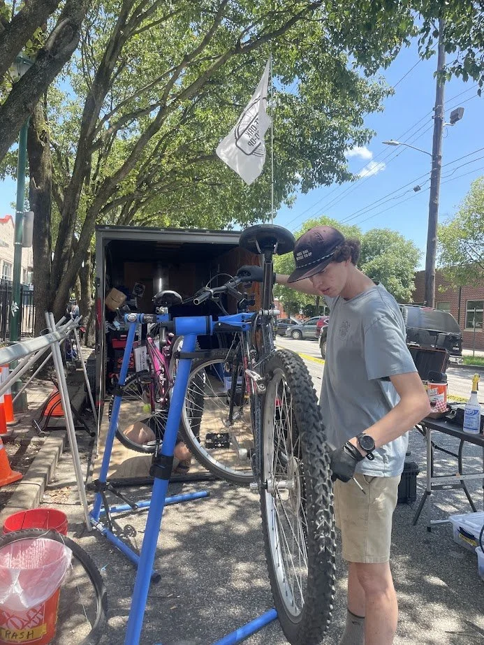 WOBC’s mobile bicycle repair shop travels around the Chattanooga region and provides free bicycle repair services